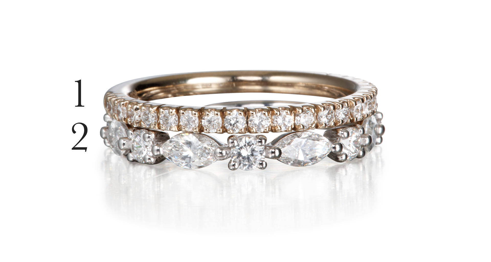 팬시 쉐입의 가드링과 클래식한 밴드 가드링을 레이어드하여 착용하시면 더욱 화려하고 유니크하게 연출이 가능합니다.