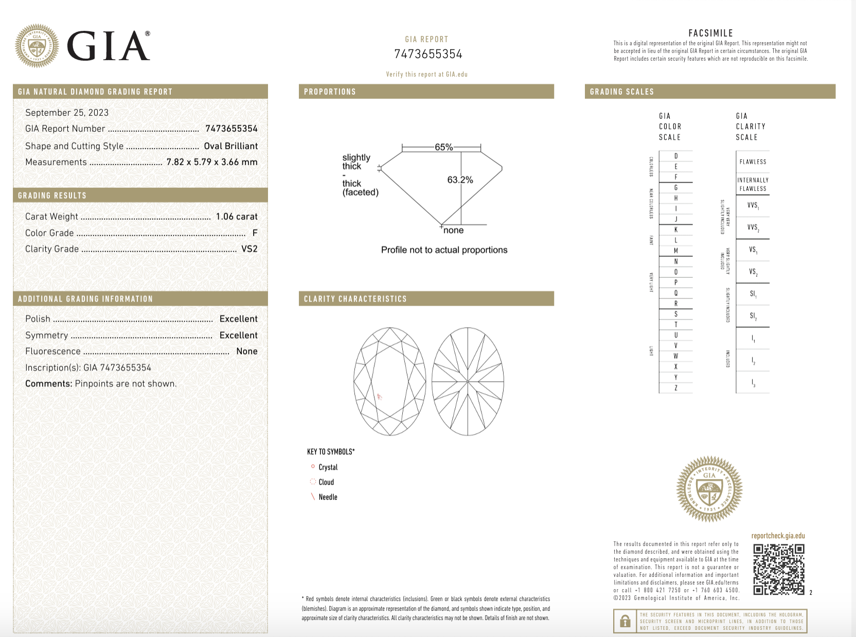 Oval 1.06ct F VS2 2EX None 5.79 - 7.82 x 3.66