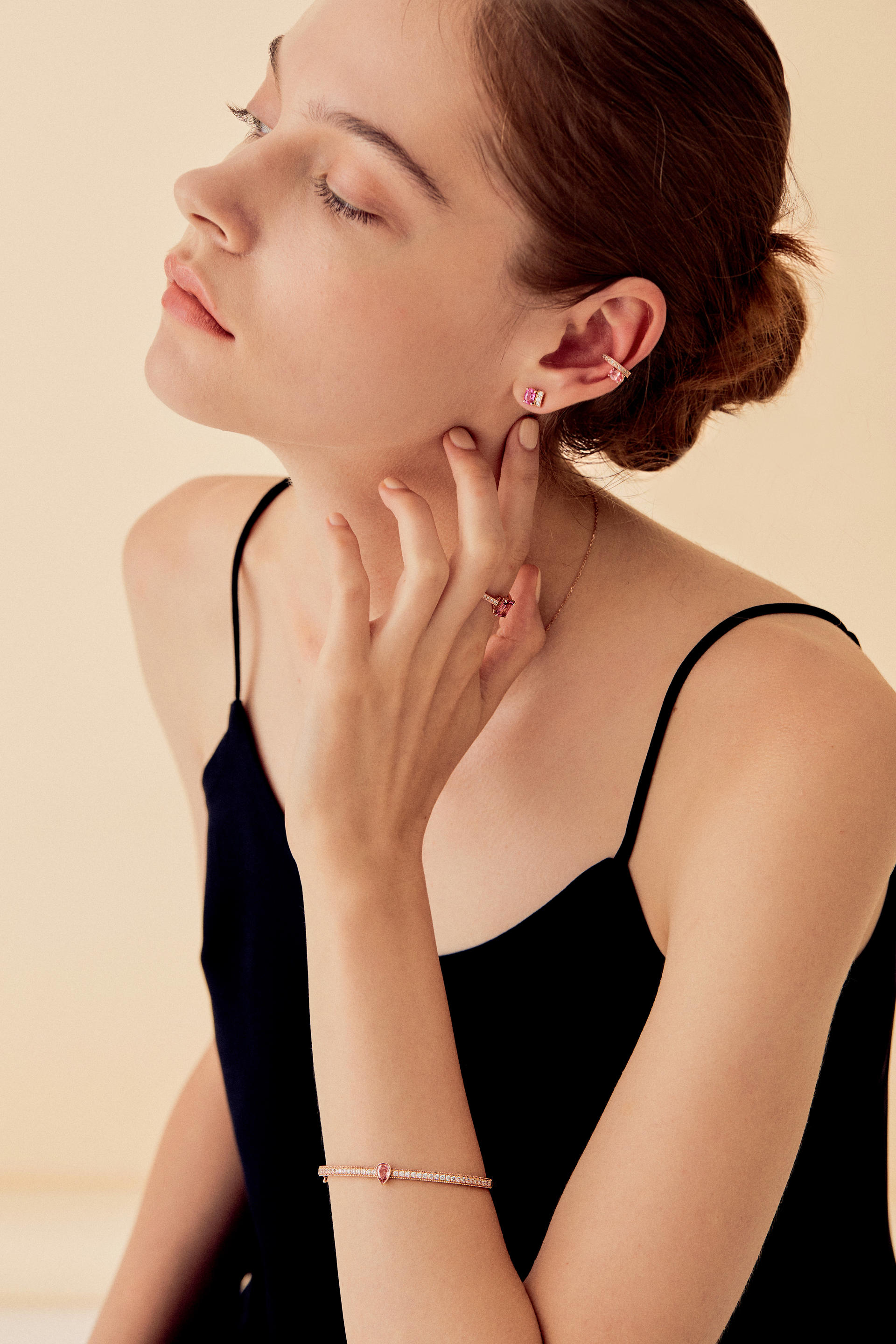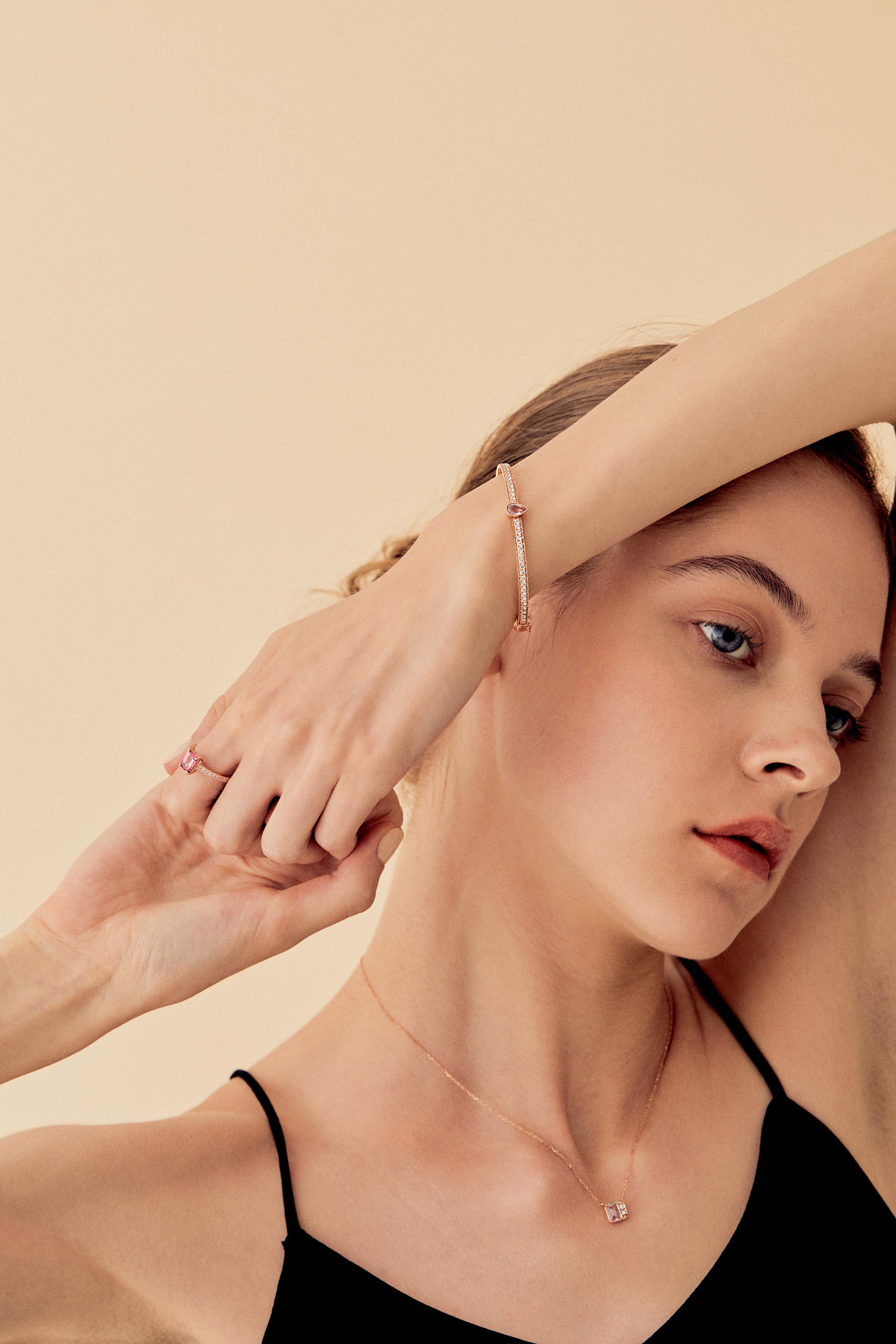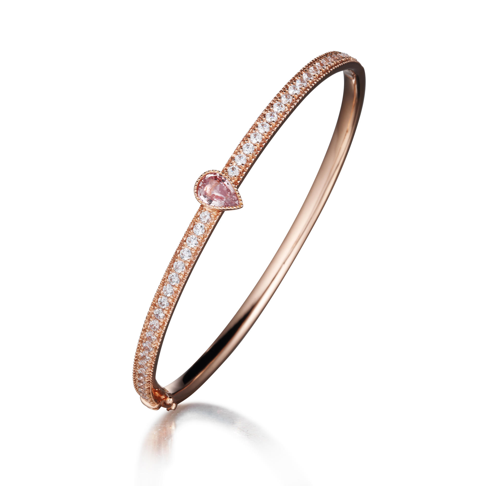 파스텔 톤의 라이트 핑크 컬러 사파이어와 화이트 다이아몬드가 세팅된 뱅글입니다.
