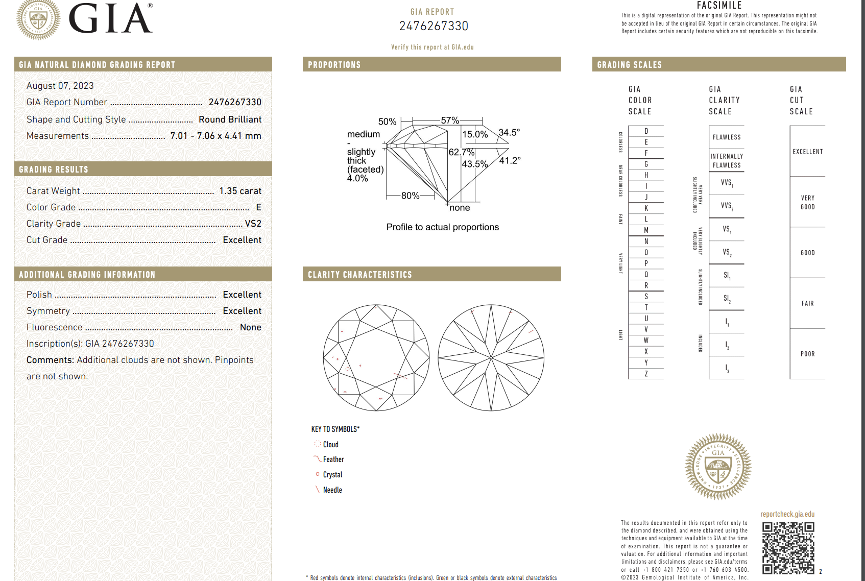 Round 1.35ct E VS2 3EX None 7.01 - 7.06 * 4.41