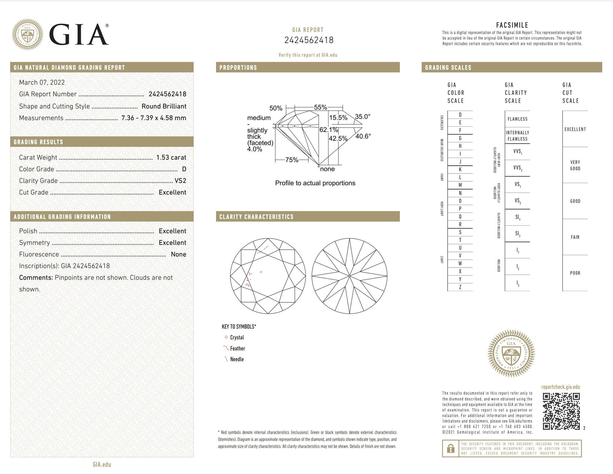 Round 1.53ct D VS2 3EX None 추천X 큰흑점
