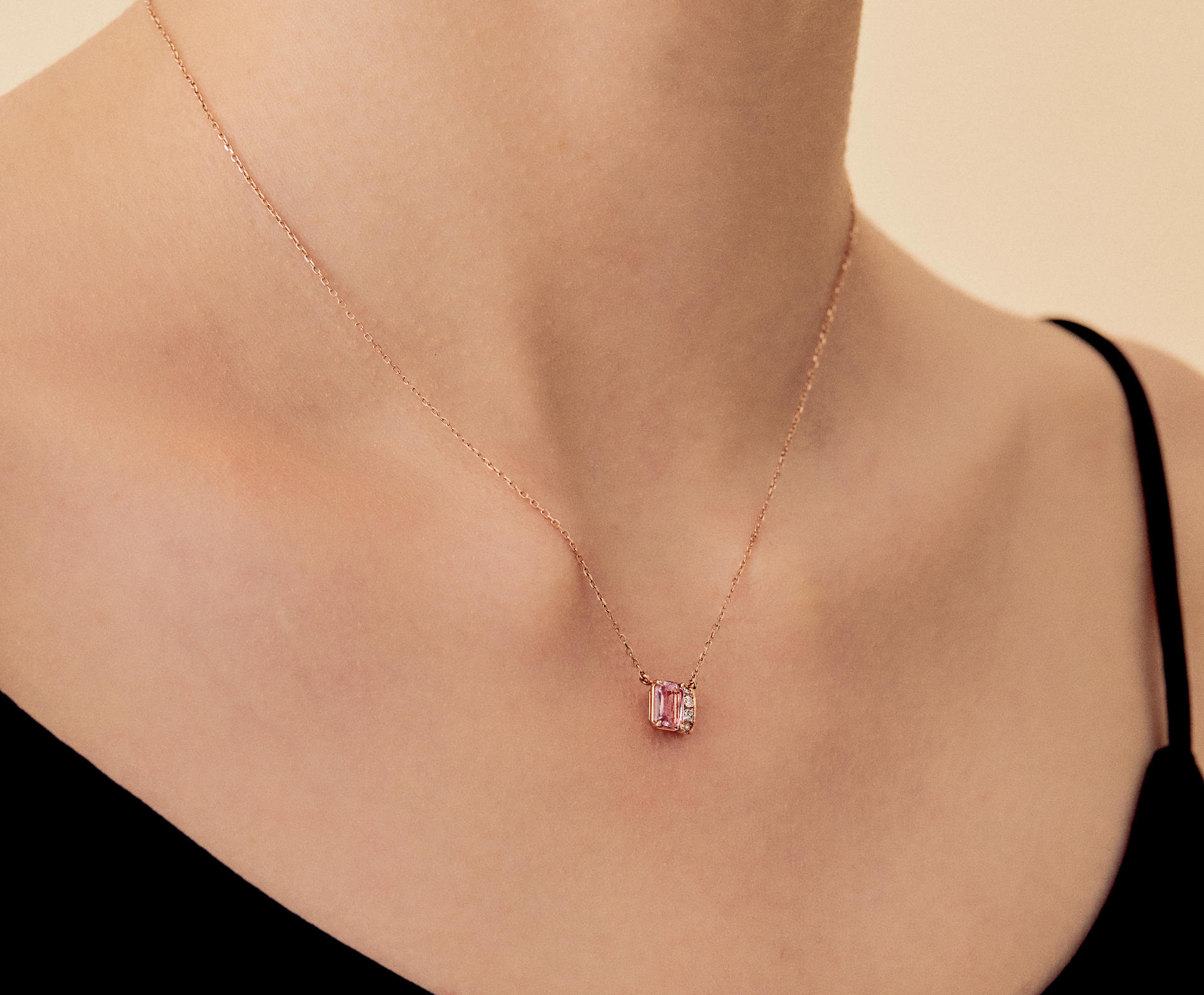 | STONE | Main - Octagon cut Light Pink Sapphire 1pcs (0.95ct) Sub - 1) Round cut White Diamonds 3pcs (Total 0.07ct) 2) Princess cut White Diamonds 1pcs (0.034ct) |