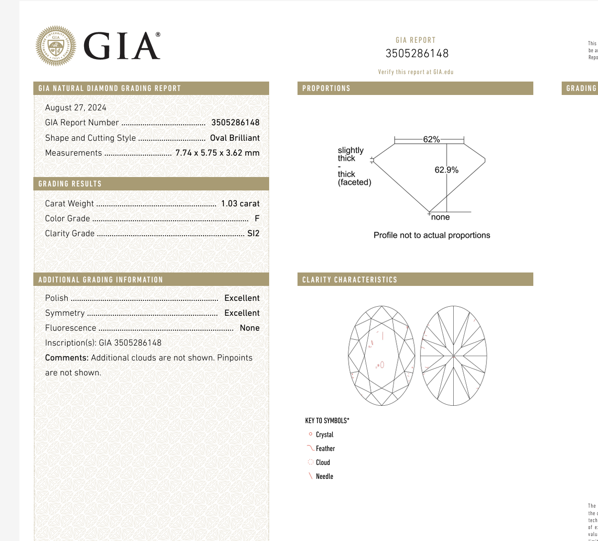 0.3ct 이상의 화이트 다이아몬드가 세팅된 주얼리는 GIA 감정서가 발급됩니다.