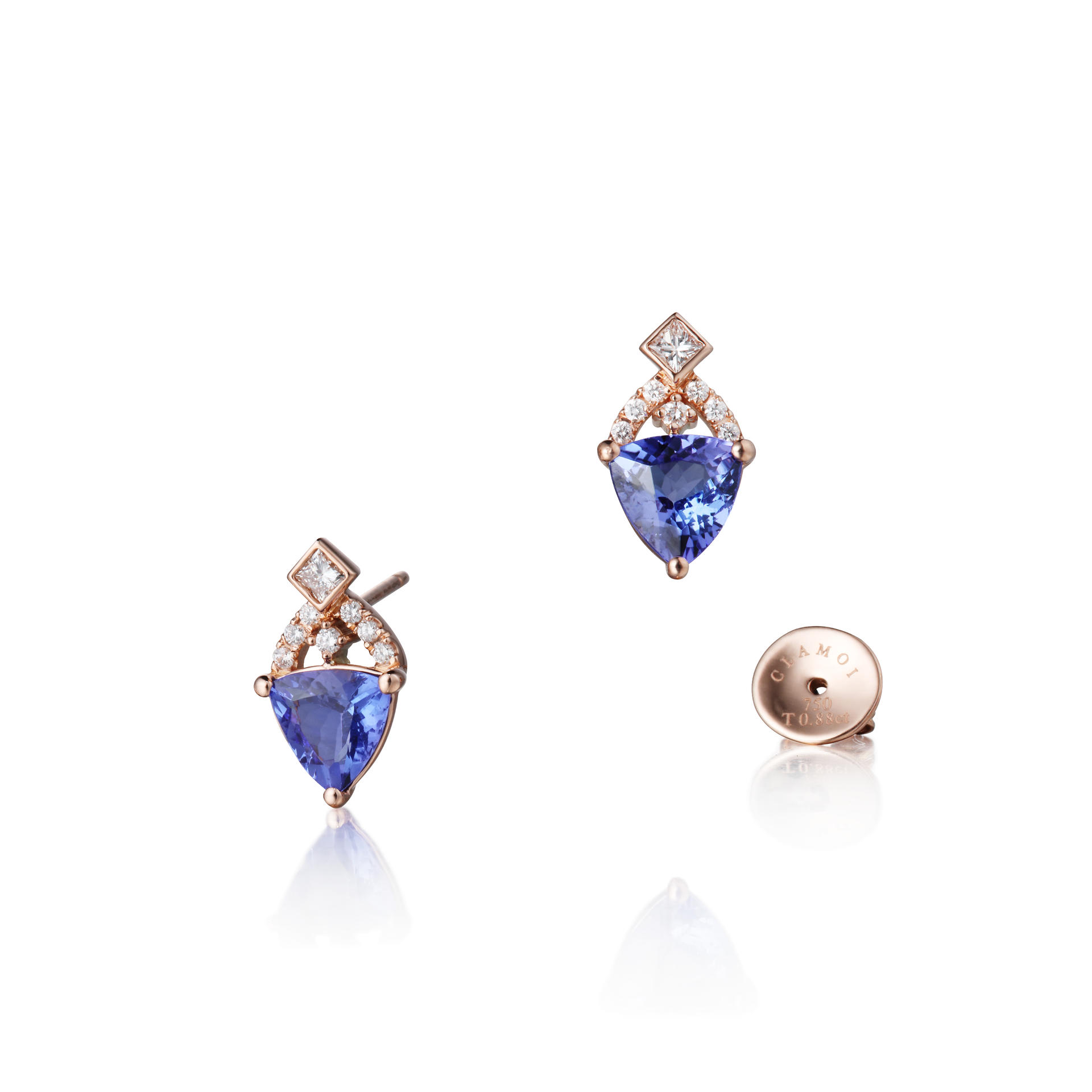 | STONE | Main - Trillion cut Tanzanite 2pcs (0.88ct /0.84ct) Side - Princess cut & Round cut Diamonds 16pcs |